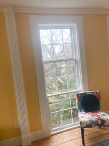 Trim is like a secret ingredient in a recipe, you don’t know exactly what it is but you have a feeling that it’s what makes the recipe so tasty.  Trim is something that is often overlooked but can make a significant impact in your space.  Trim offers architectural interest and brings it all together.  For example, our own home, a 1854 farm house has beautiful original floor to ceiling windows, these windows are framed with bold historic custom trim.  Anything less than would make these windows look out of place.  Work with your carpenter to find the best trim for your budget, taste and period of your home.